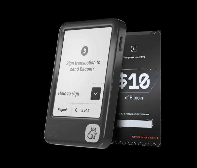 Lorsque vous recevrez votre commande, vous trouverez le bon en crypto dans le coffret de votre signer Ledger. Scannez le code QR figurant sur celui-ci et laissez-vous guider.