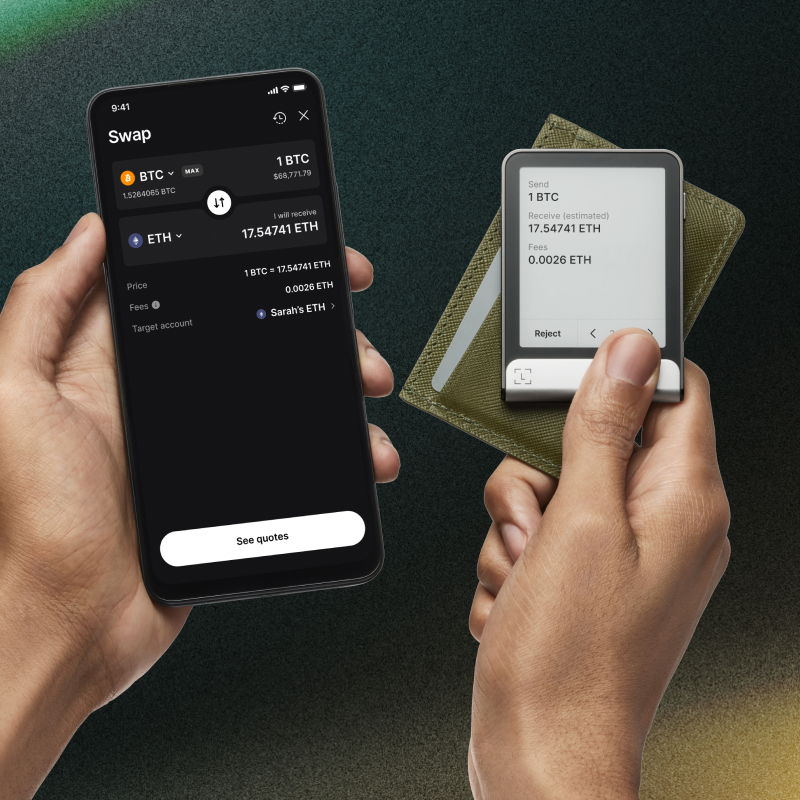 Now included, Ledger Recovery Key is your private backup to restore access to your assets with a quick, simple tap.